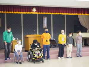 ボッチャとは…ジャックボールと呼ばれる白いボール(目標球)を投げた後、対戦する両者がそれぞれ赤と青の6球を投げ合い、自球をよりジャックに近づけたチームまたは個人が勝者となる。手で投げることのできない選手はキック、あるいは競技アシスタントのサポートを受けながら、「ランプ」と呼ばれる投球補助具(勾配具)を使ってボールを転がすことができる。という競技で、東京パラリンピックの正式種目になりました。重度脳性まひ者もしくは同程度の四肢重度機能障がい者のために考案されたヨーロッパ発祥のスポーツで普段は経験できない貴重な体験となりました。