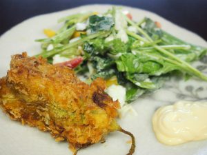 〔ピーナッツ南瓜と花のカレーコロッケ〕