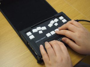 今日の一コマは、生活訓練の点字学習です。点字版やパーキンスブレイラー、ブレイルメモ等、自分の使用している点字具を使用して点字習得と使用頻度の向上に努めています。ブレイルメモではブルートゥースで2台を接続して指導に役立てています。また、神愛園の職員の方にも協力いただいて学習を実施しています!点字で打つ内容は順番にしりとりで決めて、楽しんで取り組むことが出来ていました。