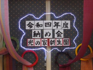 今日の一コマは、納め会の送別会です。今年度は三名の方が新生園の訓練を修了しました。長年、新生園で生活してきた三名がそれぞれ新しい環境で生活を始めます。これからも光の家の仲間として、新たな場所で活躍されることを願っています。