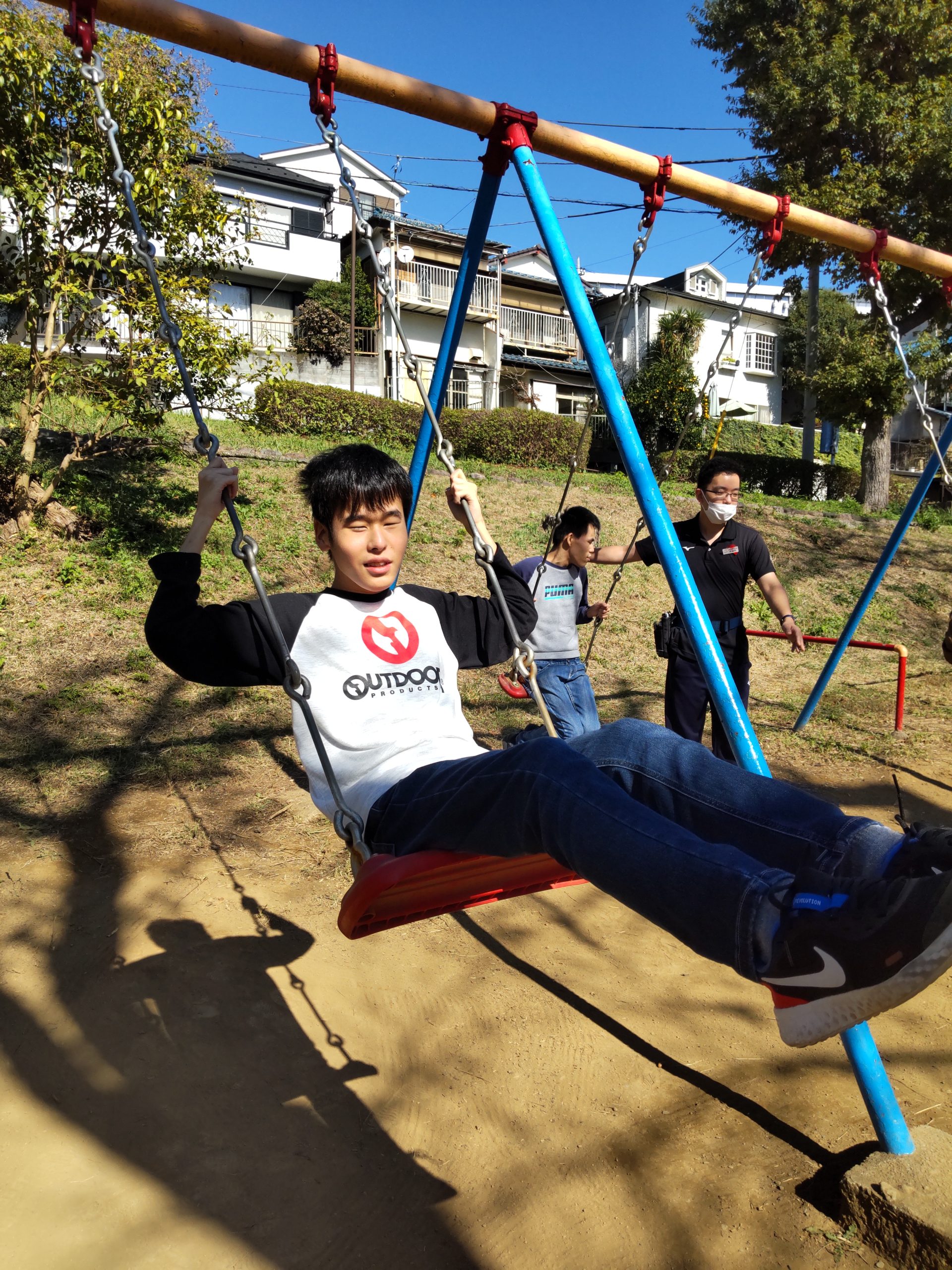 今日の一コマは、感覚訓練です。この日は秋晴れで気候も良く、外出して公園巡りをしました。公園の遊具は感覚訓練に最適なものばかり。秋の清々しい陽気を感じながら、楽しい時間を過ごしました!