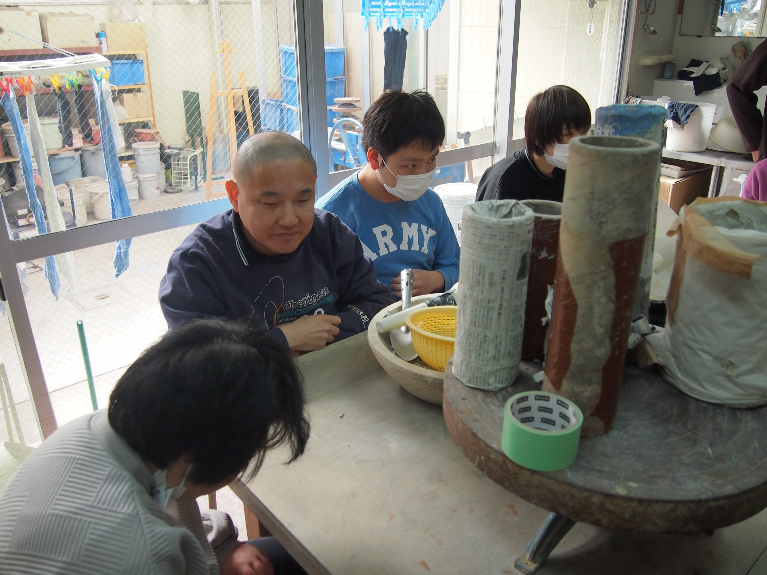 今日の一コマは、月に一度の作業ミーティングの様子です。盛況のうちに終えた手さぐりの作品展の感想や今年度の作業について一人ひとり感想を述べていました。次年度に向けた抱負を伺い、次の作品展が楽しみになりました!