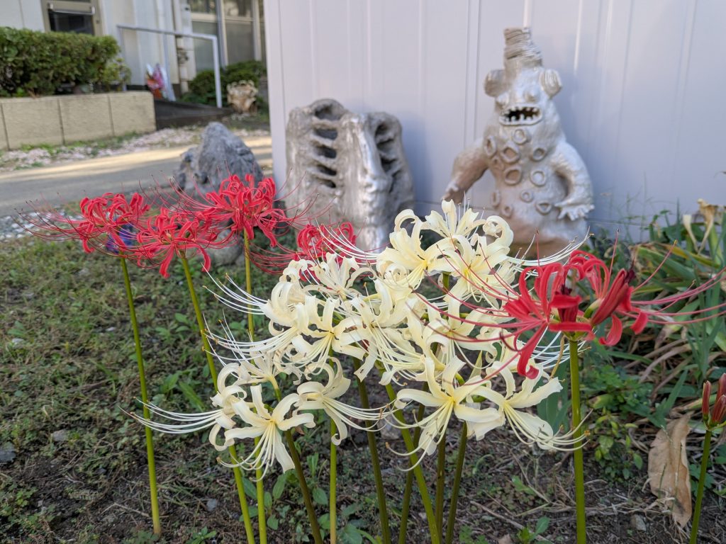 今日の一コマは、新生園玄関前に咲いた彼岸花です。毎年、鮮やかな紅白で秋を知らせています。