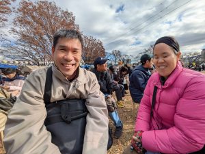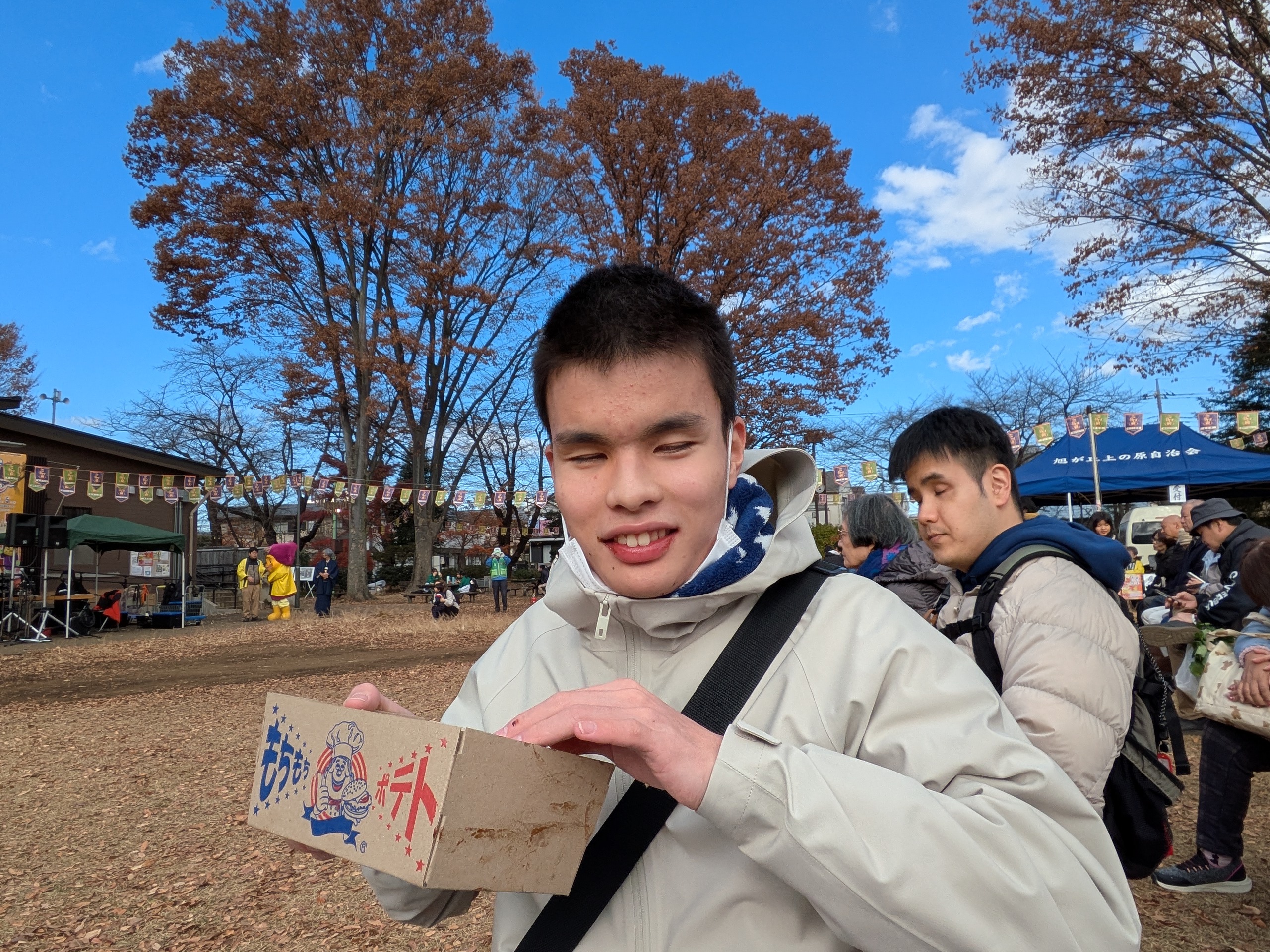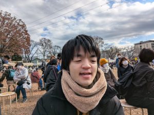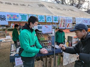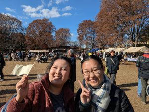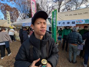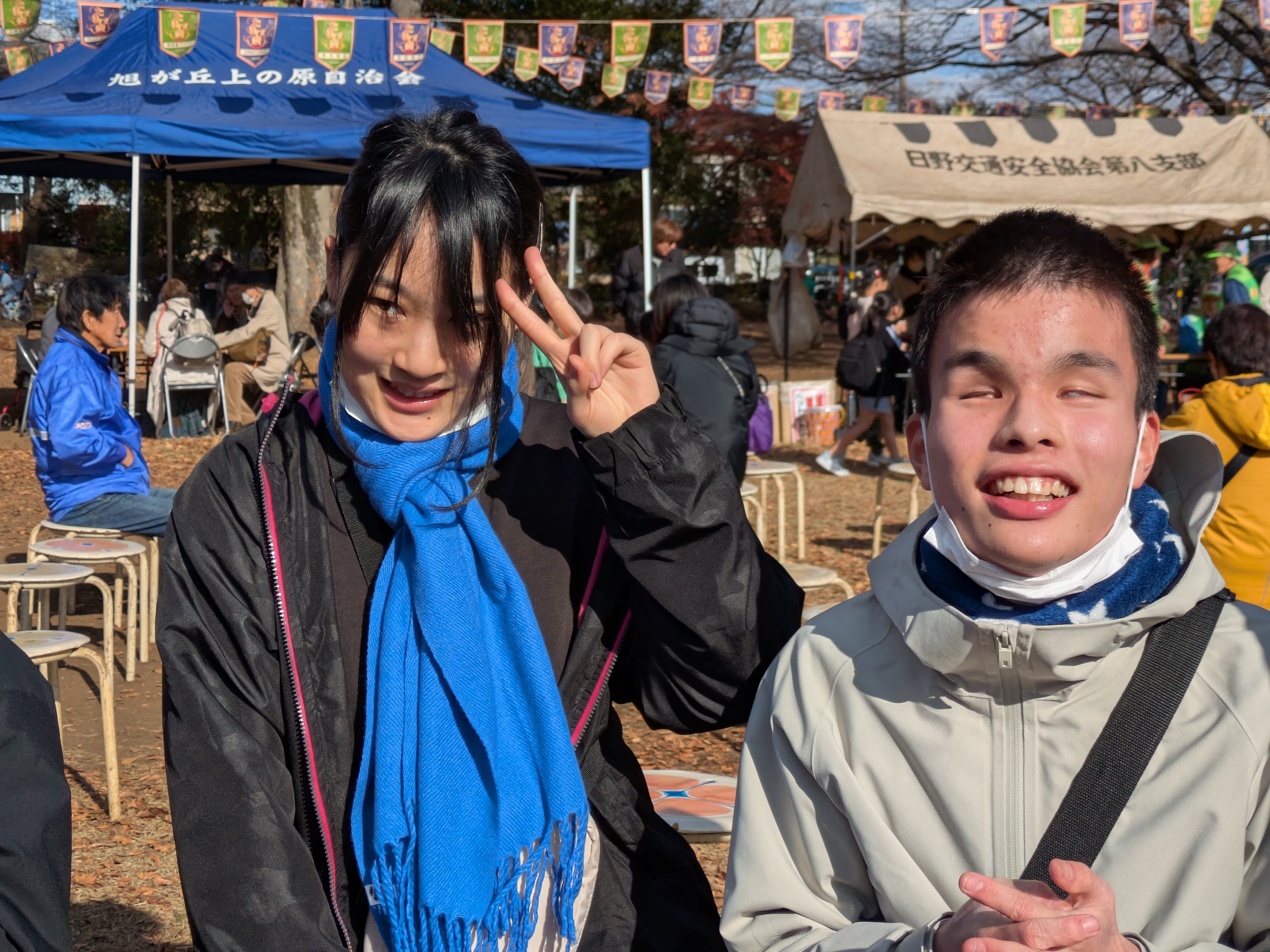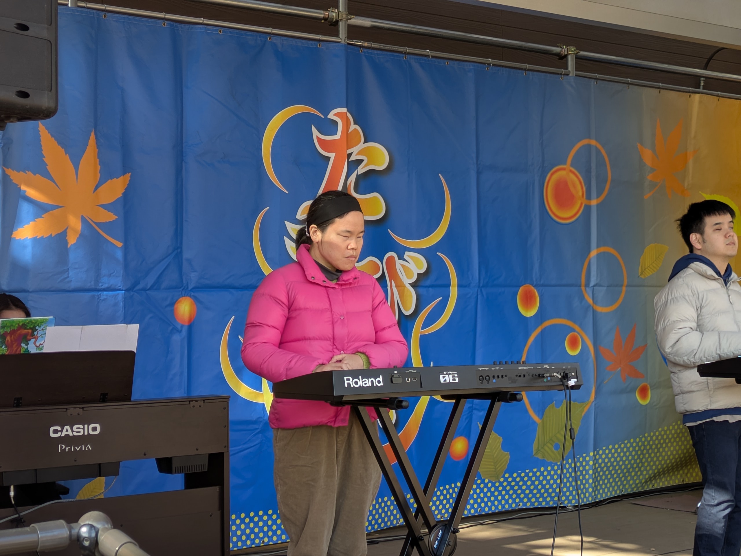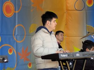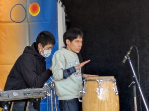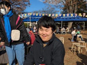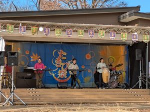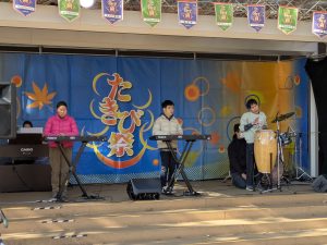 今日の一コマは、たきび祭です。旭が丘中央公園で毎年開催される「たきび祭」に参加してきました。ひまわりのメンバーも毎年恒例のオープニング演奏を披露しました。応援に参加した利用者の皆さんもステージや模擬店の味を楽しみました。