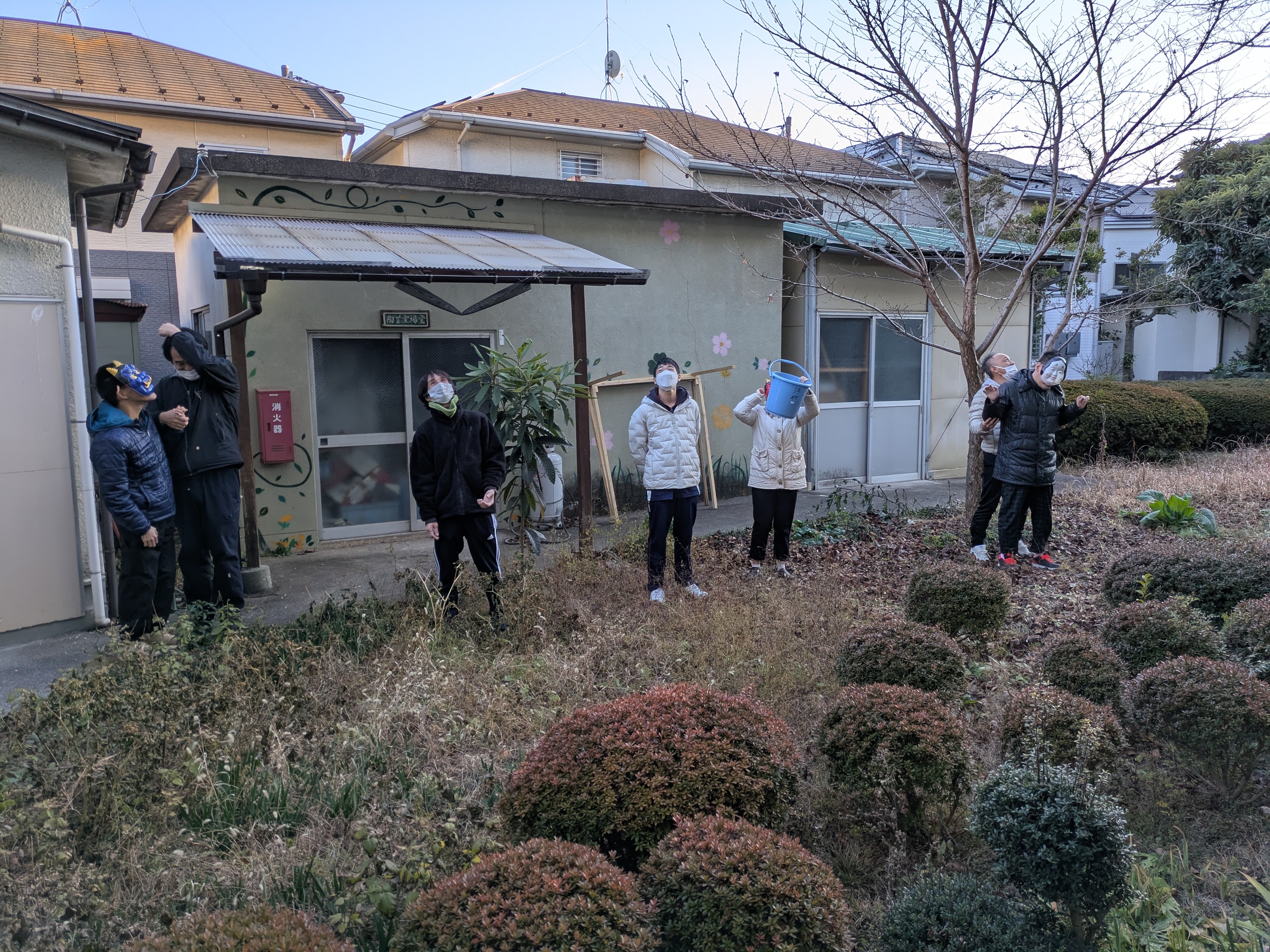 今日の一コマは、節分の豆まきです。希望する利用者も鬼に扮して、力いっぱい鬼を追い出して福を招きました!皆さん、日頃の思いを込めてなのか、鬼(職員)に向けて豆を投げて笑顔がはじけていました。