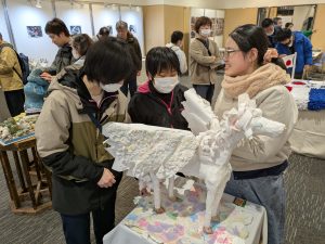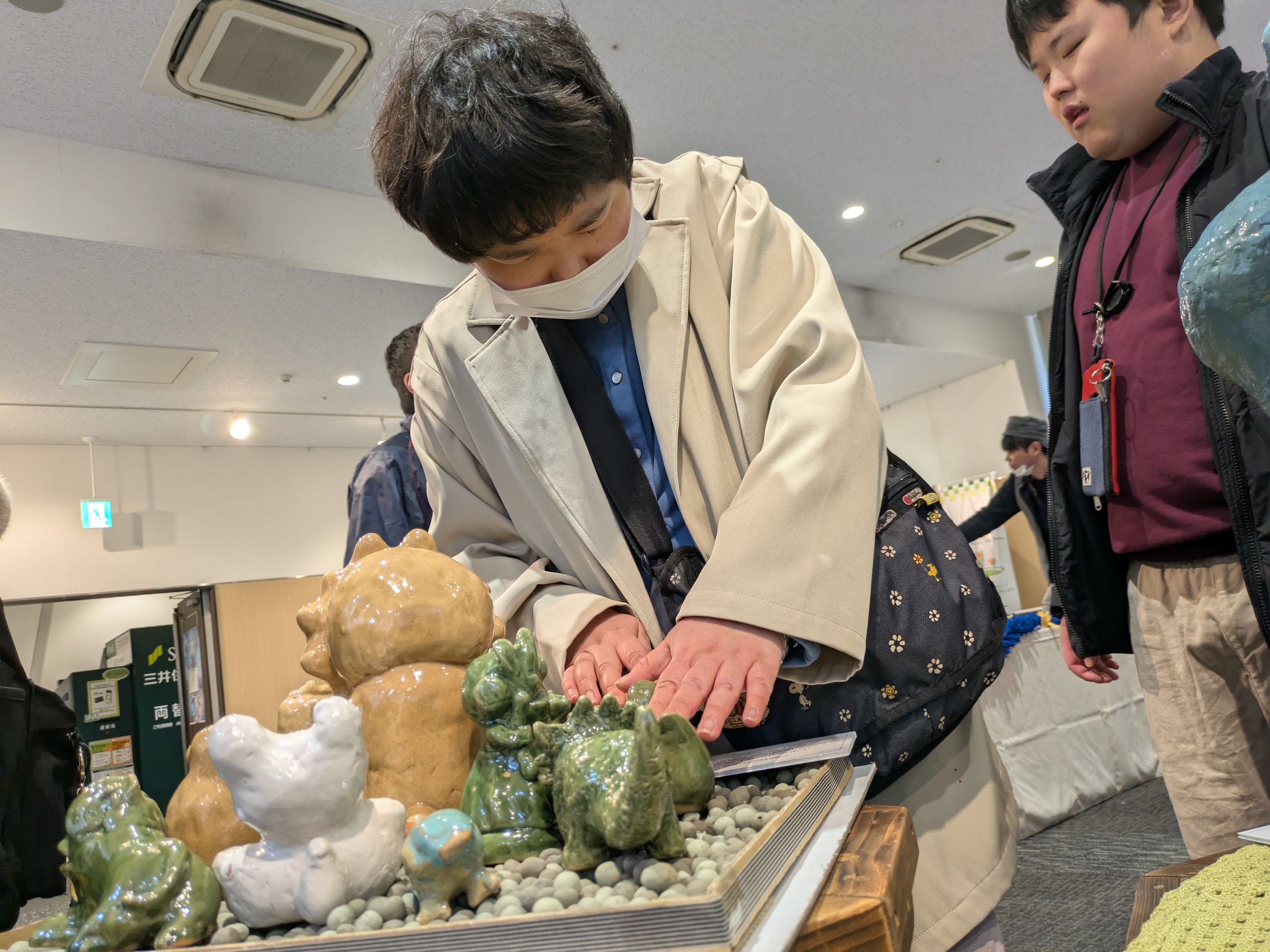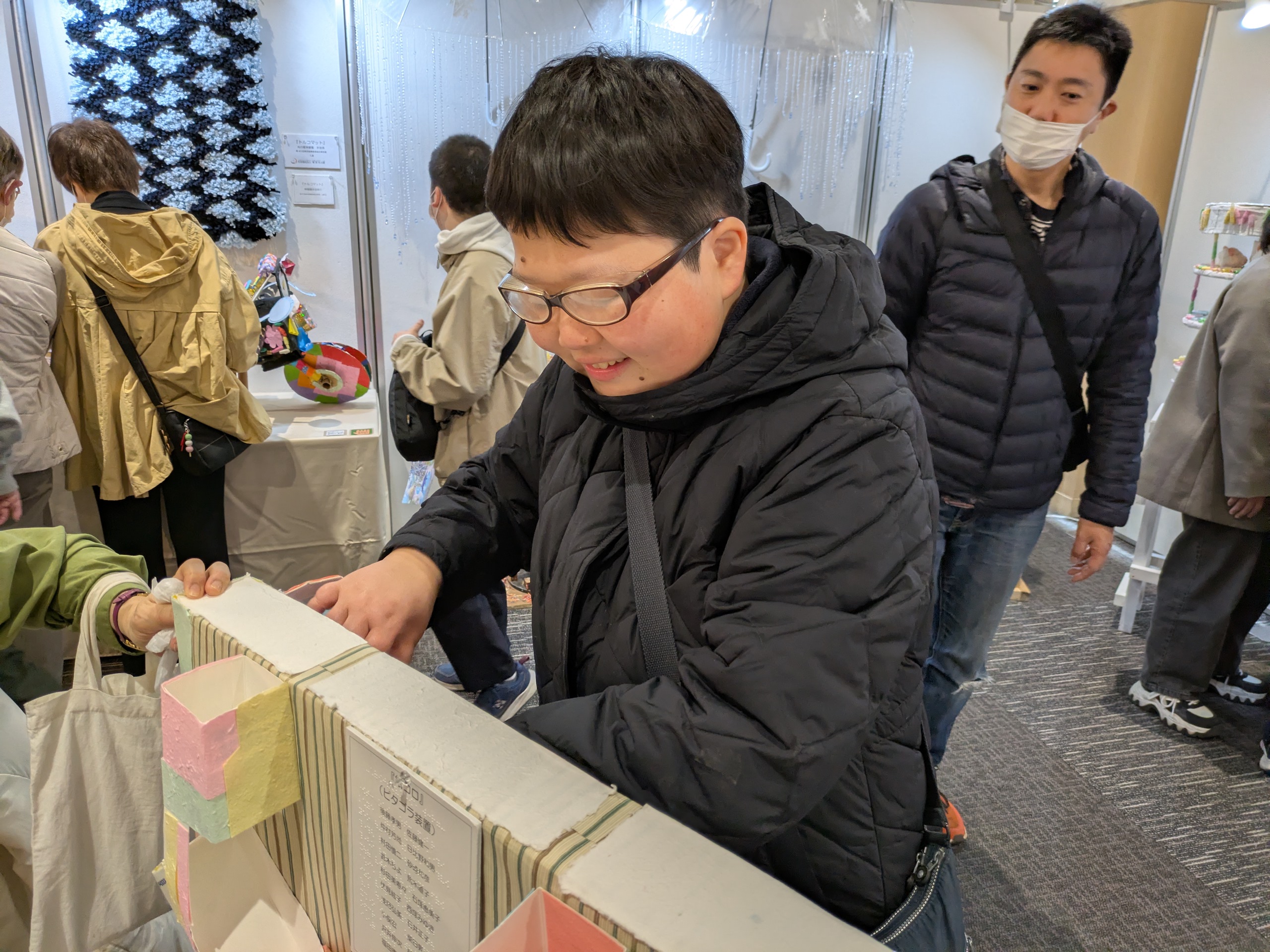 今日の一コマは、イオンホールで開催された手さぐりの作品展見学です。一年の集大成の作品を大切に触れながら、自身で作った作品の出来栄えを確認していました。来年に向けて作品作りの英気を養いました。見学のあとはフードコートや買い物で各々、充実した時間を過ごしました!