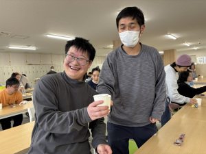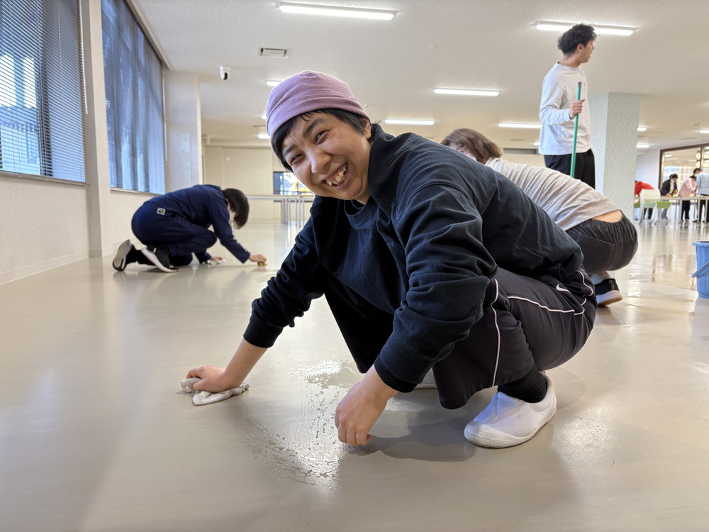 キッチン&カフェカナンは明日まで営業なので、勤務のある方はいらっしゃいますが、多くの方が明日から冬休みに入ります。令和7年最終日にみんなで午前は大掃除をしました!いつも使っている食堂をみんなでにぎやかに(?)掃除し、令和8年もまた気持ちよく過ごすためゴシゴシ!!!午後はミーティングで来月の確認をした後、みんなでお疲れ様の乾杯!
