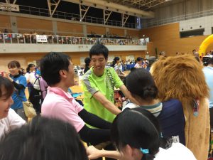 10月6日(日)に、レクリエーションクラブを中心に、第23回みんなといっしょの運動会へ参加しました。当日の天気は曇りで前日との気温差が大きく、とても涼しい日でした。日野市民の森ふれあいホールの中は、運動会の盛り上がりですごい熱気。ボランティアの方もたくさん来て下さり、一緒に楽しく盛り上がりました。競技の合間にウィルチェアラグビーの「RIZE CHIBA」チームの模擬試合や体験会、今話題になっているラグビーを車いすでやるとなるとどうやるんだろうと興味津々。車いすに乗ってのタックルは車いす同士でぶつかるというかなりの衝撃を伴うもの。その体験を選手の皆さんと一緒に行い、貴重な体験でした。また、首都大学東京リーダー部による演舞もあり、珍しい男性グループのチアのアクロバットな演舞と応援団、女性のチアとの合同演舞に見ごたえのあるものであり、みんなで前のめりに盛り上がりました。昨年は台風で行けなかったですが、今年は天気に恵まれ行くことが出来、とても充実した1日となりました。