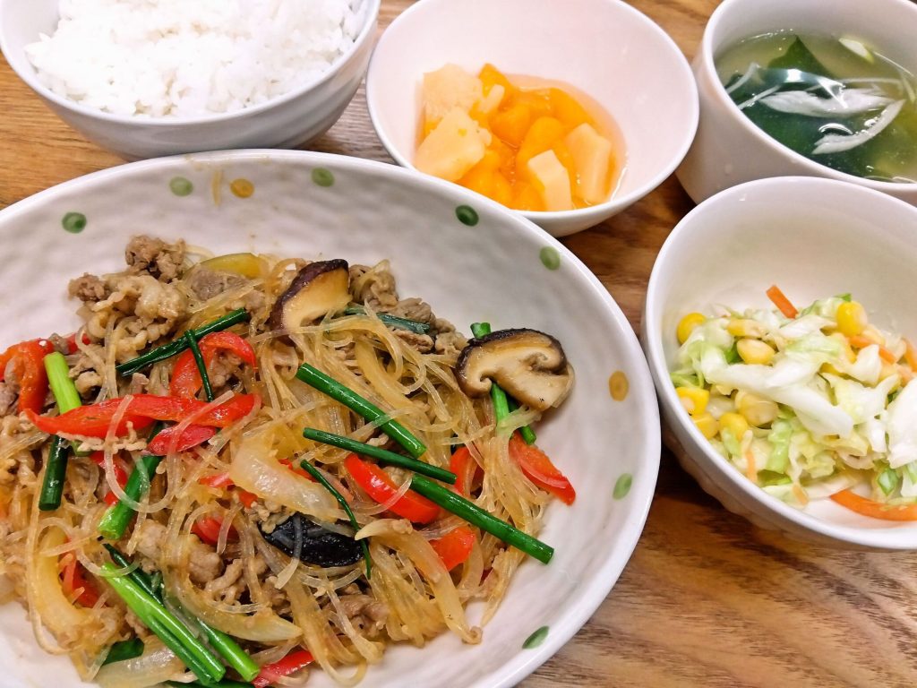 牛肉と彩り野菜のチャプチェ&コールスローサラダ