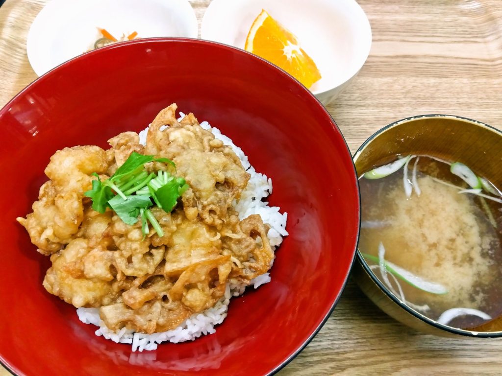蓮根と海老の天むす風丼&きのこのポン酢和え