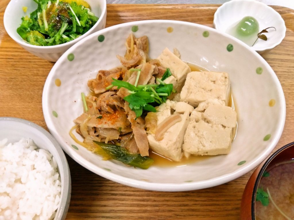豚バラ肉豆腐&甘夏サラダ&くず饅頭