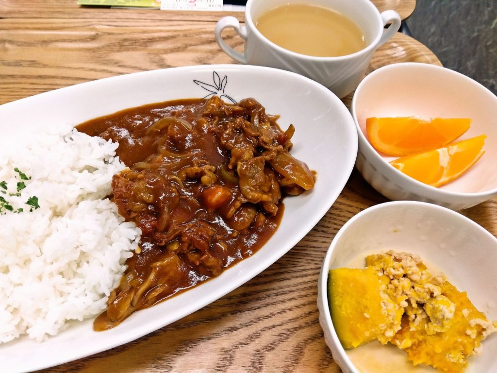 牛肉と舞茸のハヤシライス&南瓜のミルクそぼろ煮