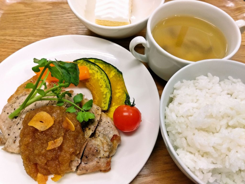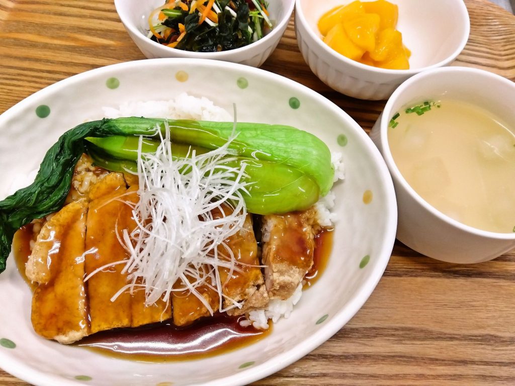 ジャンバラヤのチキンソテー乗せ&菜の花サラダ
