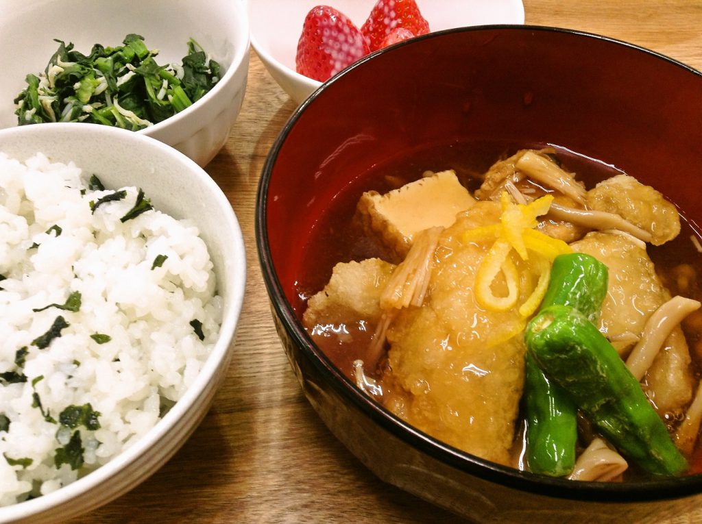 鶏肉と茄子・南瓜の揚げびたし&柿
