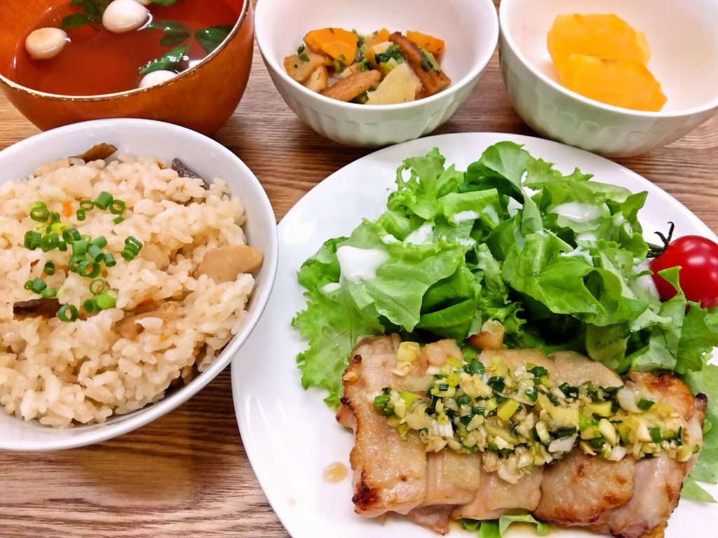 松茸ご飯&和風チキンソテー&冬瓜煮つけ&柿