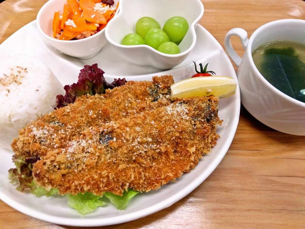鰺のチーズカレー揚げ&人参サラダ&マスカット