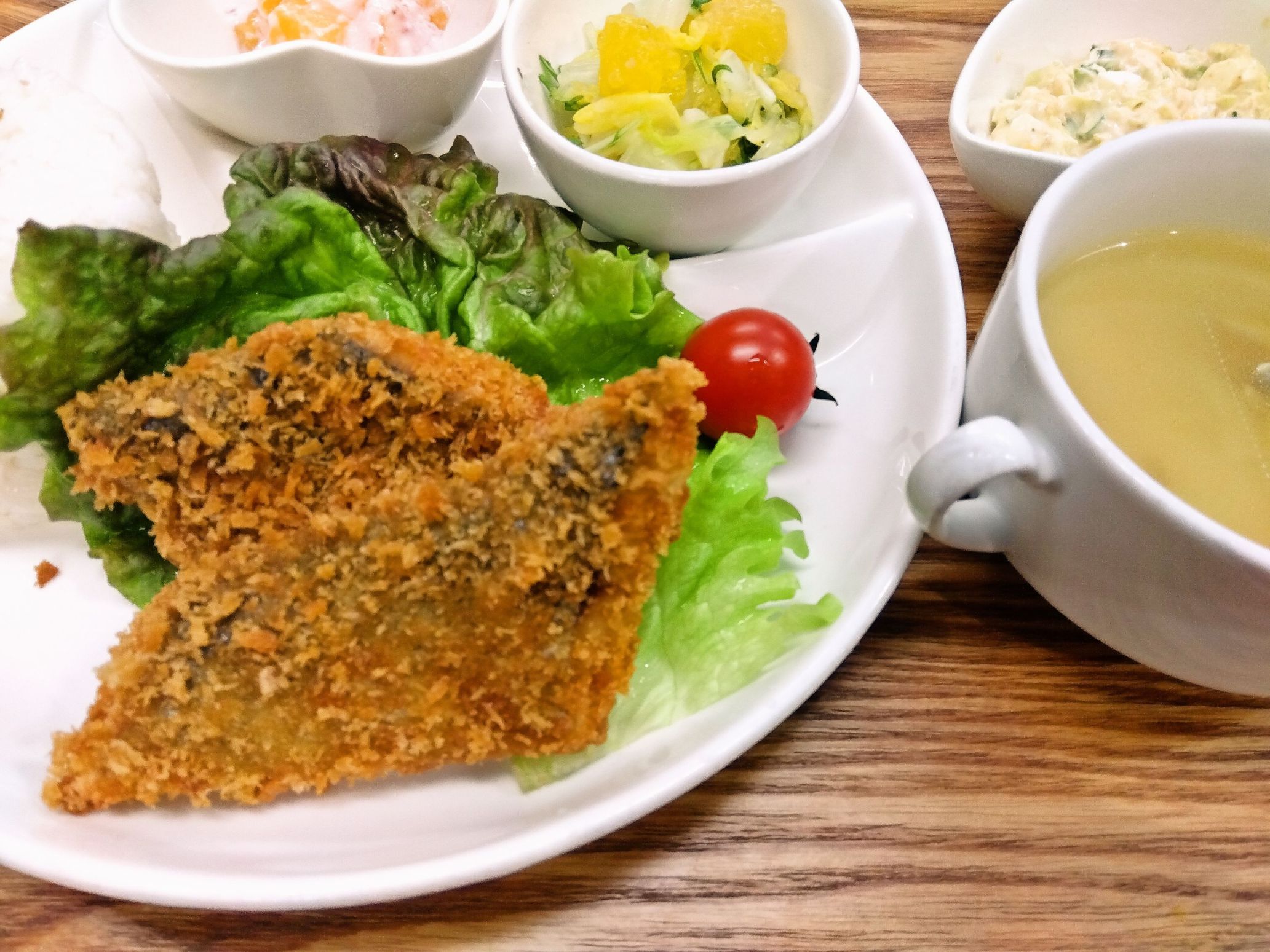さわらカツの春キャベツのタルタルソースがけ&甘夏サラダ
